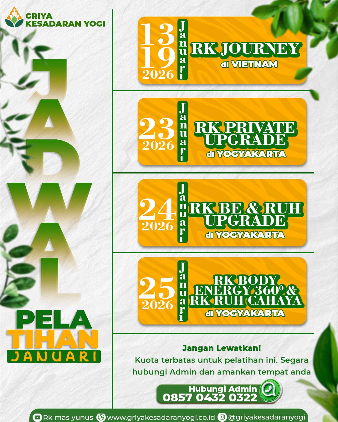 Ikuti pelatihan energi RK Mas Yunus dan rasakan perubahan nyata dalam hidup Anda.